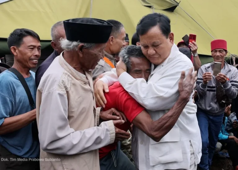 Tiba di lokasi, Prabowo langsung menengok masyarakat termasuk para lansia. Prabowo memberikan pelukan hangat seraya menjenguk dan mengecek kondisi mereka.