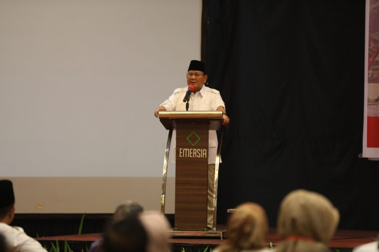 Ketua Umum Partai Gerindra Prabowo Subianto bertemu atusan kader Partai Gerindra dari tingkat DPC hingga DPD Partai Gerindra Sumbar serta Fraksi DPRD Sumbar dan DPRD Kabupaten dan Kota, Sabtu (29/4/2023).