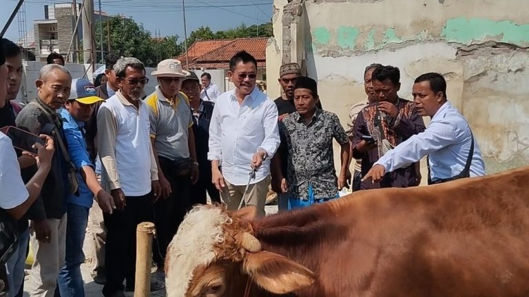Ketua DPC Partai Gerindra kota Pekalongan Anyta Rianti Menerima 1 Ekor Sapi dari Dr Ramson Siagian (Bung Ramson). Penyerahan hewan Qurban itu berlangsung di halaman Kantor DPC Partai Gerindra kota Pekalongan, Senin (17/6/2024).