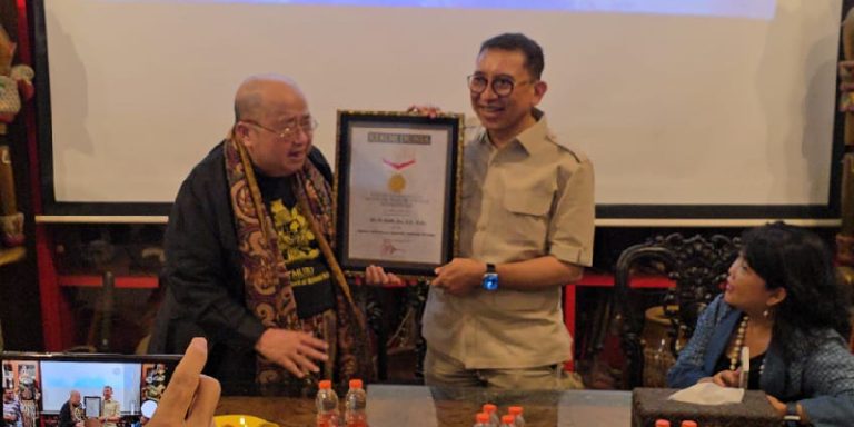 Jaya Suprana menyampaikan penghargaan khusus untuk Fadli Zon yang telah menerima 54 piagam sebelumnya.