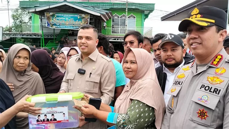 DPD Partai Gerindra Provinsi Riau dan DPC Gerindra Kota Pekanbaru menyalurkan bantuan 1000 paket sembako kepada korban banjir di Jalan Yos Sudarso, Kelurahan Sri Meranti, Kecamatan Rumbai, Rabu (12/3/2025).