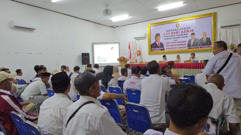 Hal tersebut disampaikan langsung oleh Ketua DPC Partai Gerindra Sragen, Wahyu Dwi Setyaningrum, saat sosialisasi 130 hari kerja Prabowo sekaligus acara buka puasa bersama di kantor DPC setempat.
