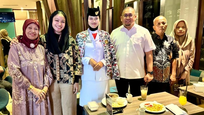 Wakil Ketua Komisi VI DPR RI, Andre Rosiade, memberikan hadiah apresiasi sebesar Rp10 juta kepada Lulu Athul Fuadah, siswi SMA Negeri 1 Sitiung, Kabupaten Dharmasraya, yang terpilih menjadi anggota Pasukan Pengibar Bendera Pusaka (Paskibraka) tingkat nasional.