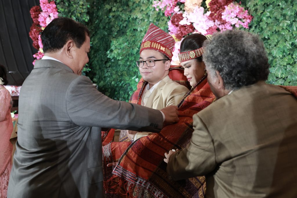 Hadiri Resepsi Pernikahan Adat Batak Putra Hotman Paris, Prabowo Kalungi Kain Ulos